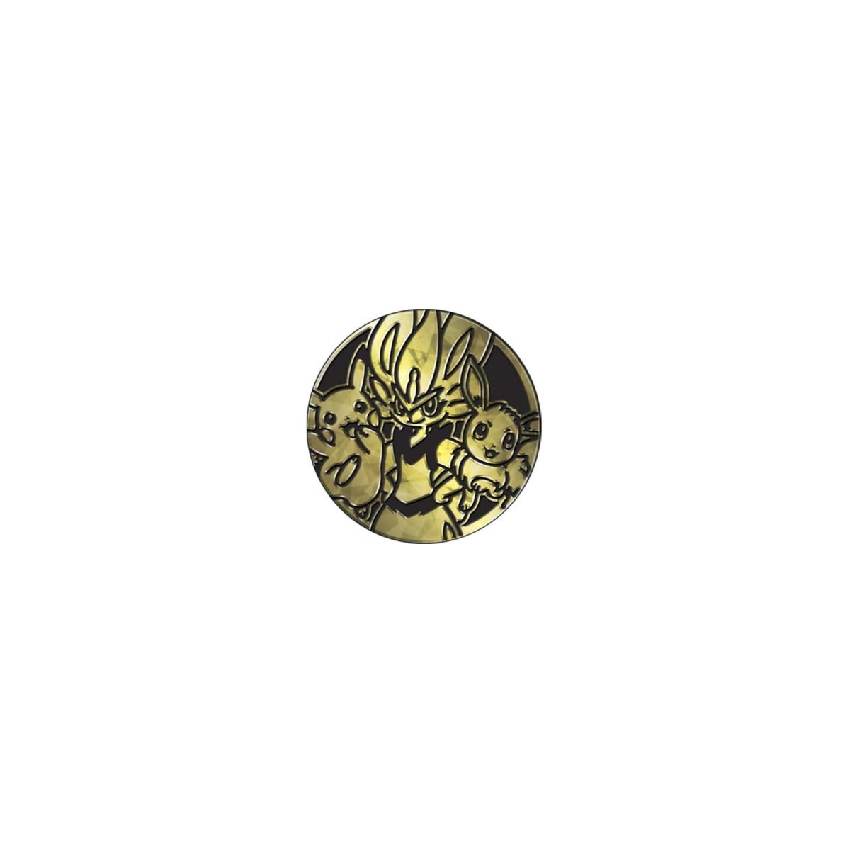 - 1 large metallic coin featuring Cinderace, Pikachu, and Eevee